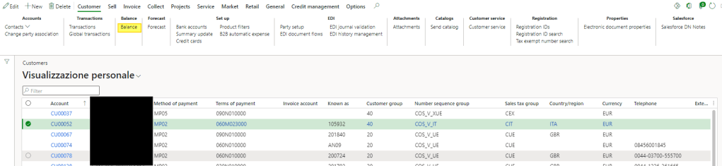 Select the customer and click “Balance”: