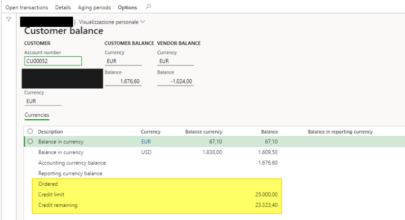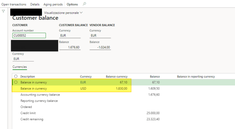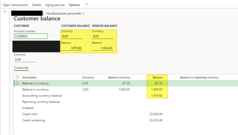 Then, it’s possible to see the Total of the balance converted on the accounting currency. If the customer is linked with a vendor using the same “Global address book”, you can see also total vendor balance on the accounting currency: