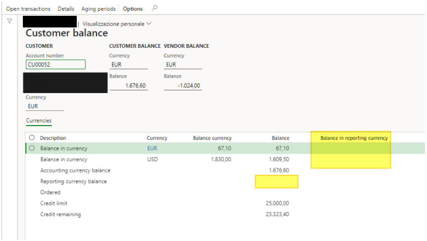 If it’s set, you can view the Total of the balance convert on the reporting currency: