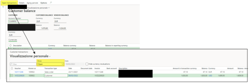 Select “open transaction” to see the open transaction that was composed of the balance: