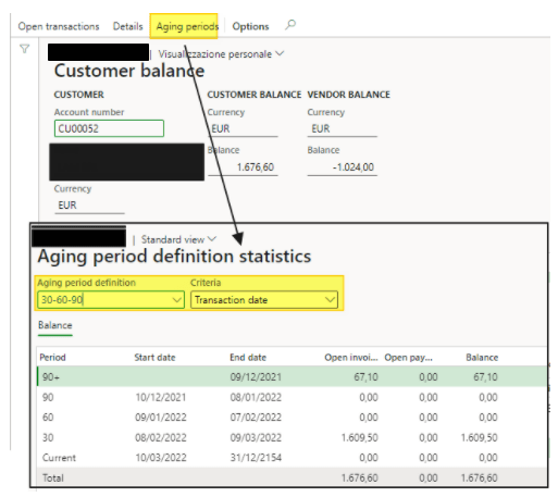 Lastly, select “Aging period” to see quickly an aging selecting: