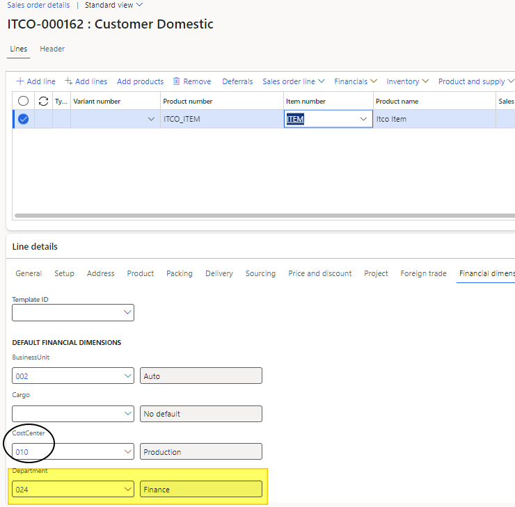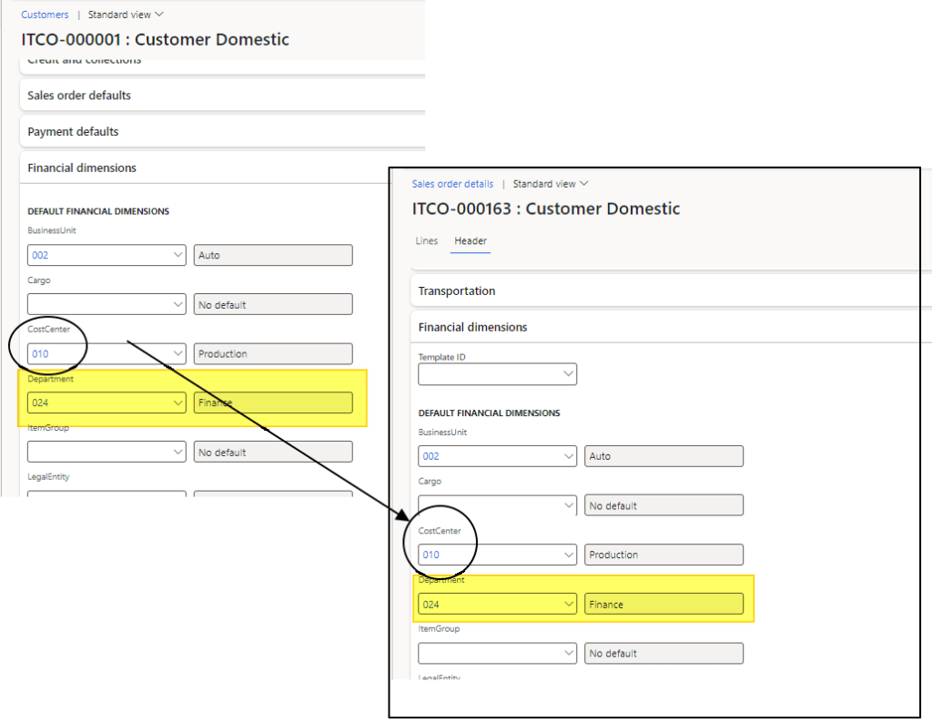 - Prevent changes to derived value: It means that the user cannot change the financial dimension manually on the entry (sales order, purchase order, and general journal)