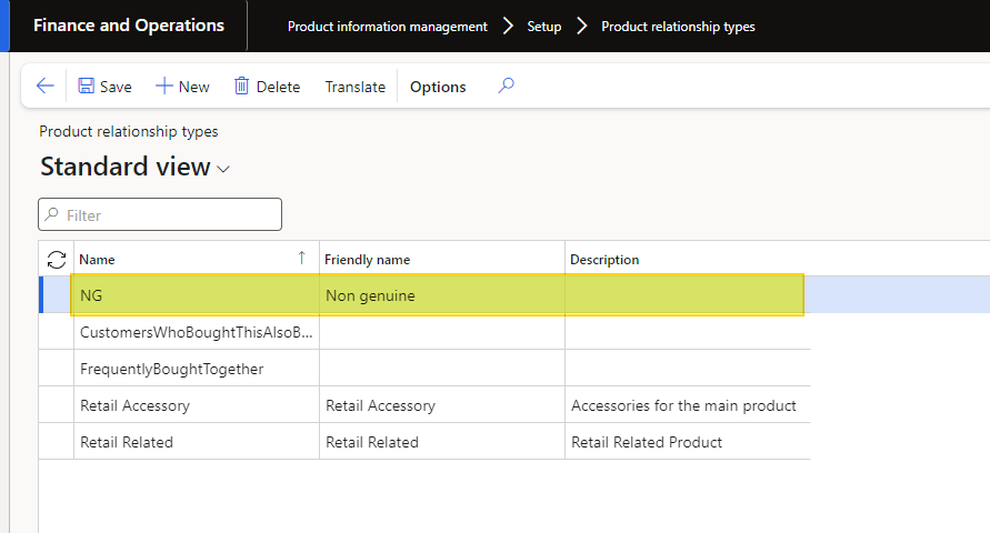 The relation is set on the product level. Select a product; this one will be the father of your relationship. Then press the button “Releted product” to inset the children’s product: