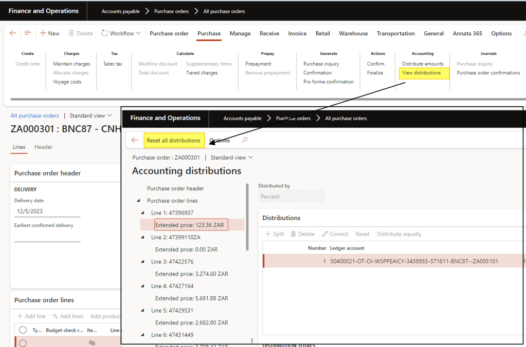 For more details, you can also consult this article: https://cloudblogs.microsoft.com/dynamics365/it/2020/08/12/resolve-po-distribution-errors-in-dynamics-365-supply-chain-management/