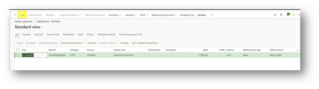 Now, you can post the payment journal.
