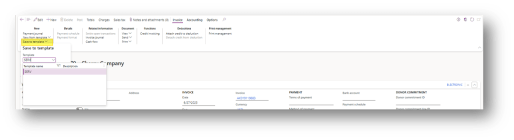 Further on, we will see that during the generation, we can decide if the invoice will inherit the information from the customer master data or the template.