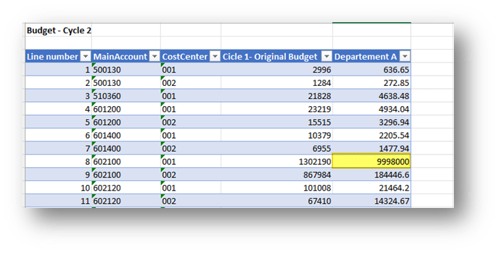 The process is an extension of the regular procedure used to manage the budget plan with Excel. It consists of applying a dedicated spreadsheet to make advanced simulations and then transferring the result in the budgeting plan using Excel Macro. Below, you can see a quick example: