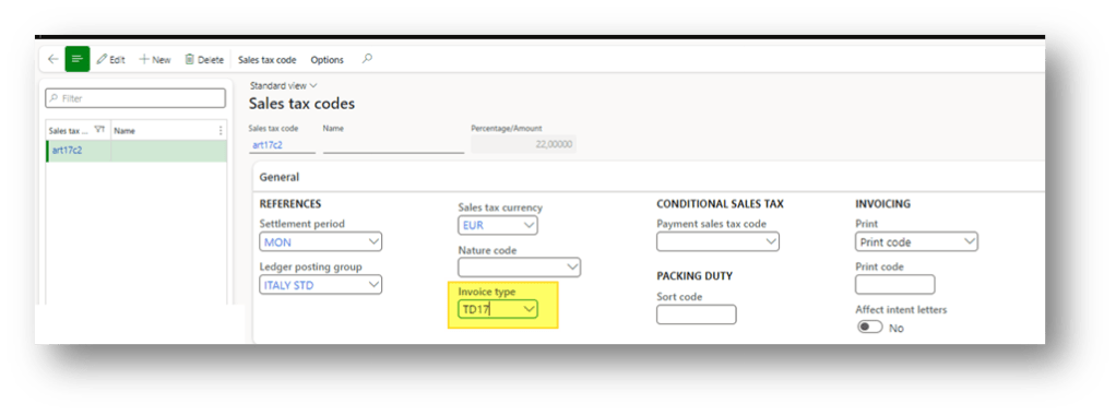 Keep in mind that usually, the self-invoice has a dedicated document type. So, create a dedicated sales tax code and insert the correct document type (like TD17):