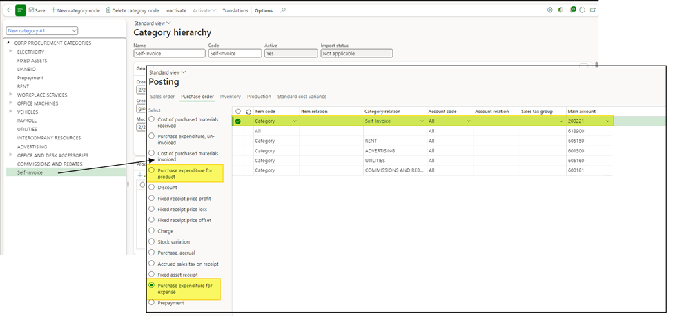| 2 | Self-Invoice | Cost | 100 | Items/category posting profile or insert manually free text invoices line | |