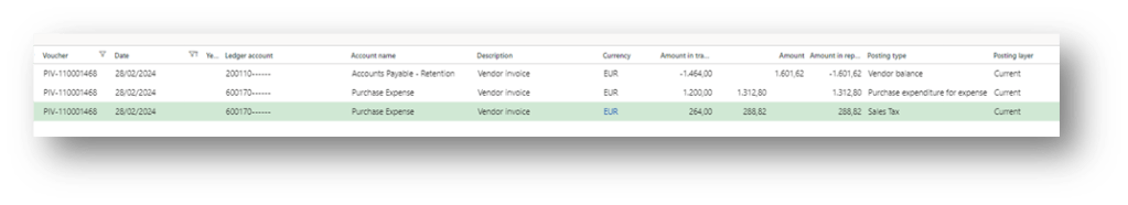 As you can see during the posing, the system creates the vendor invoice general entry: