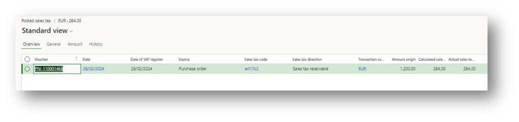 At the end, if we see the tax registration, we can see that the VAT outgoing was been posted: