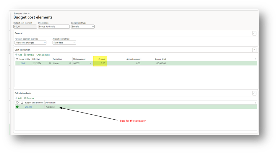 - Cost calculation: the calculation to perform for each legal entity: