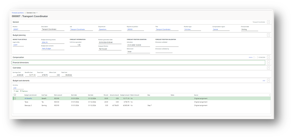 The forecast position is related to human resource management. We can create a cost forecast for the position in the future period. This kind of forecast is disconnected from the compensation business process and configuration. So, we can run the compensation management in a third system. In D365FO, we are going to insert an amount approximation of the cost element we would like to tack on in the future.