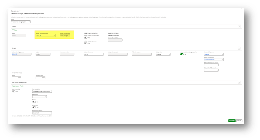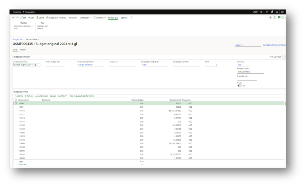 Launch the generation. When D365FO has finished, we can see the budget planning proposition: