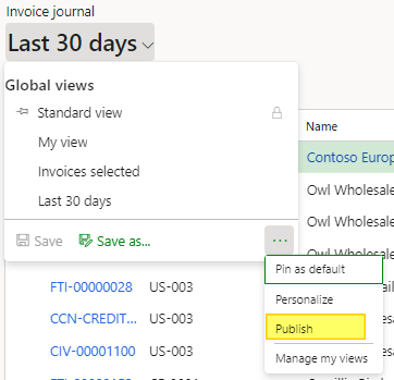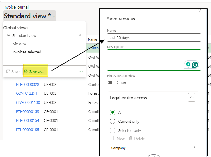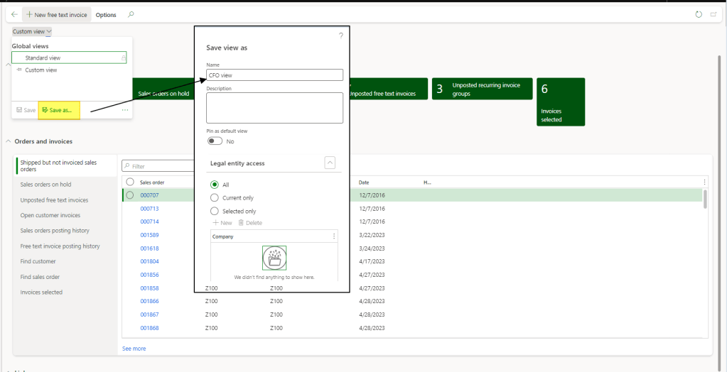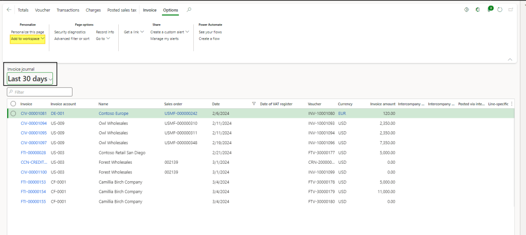 Return in our custom form (customer invoice in this example), select the correct filter, and press “add to workspace”