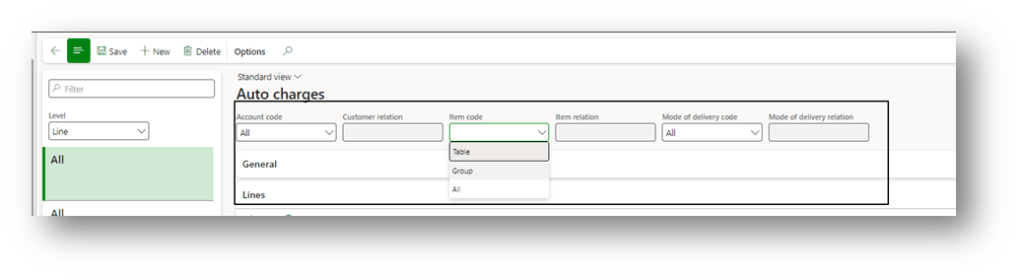 - Line: Customer + Item + Mode of delivery code in line level