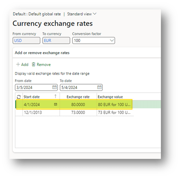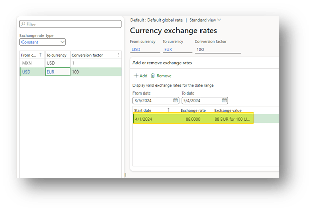 - Specific: recover the exchange rate from the cash and bank management parameters