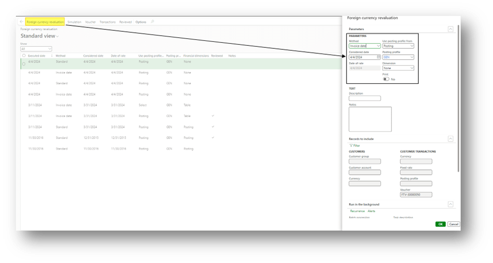 As you know, we use the revaluation method “invoice date” to make a rollback of your calculation. If we do it, we should remember to change the parameters to take the general ledger parameters: