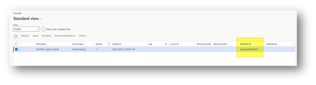 - We can review the result of the journal intercepted by D365FO at the beginning before launching the automatic posting.