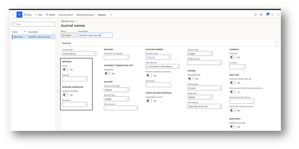 - To approve the journal before the posting, we can set on the journal an approval group or a workflow: