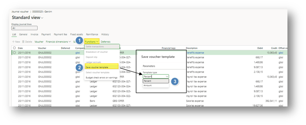 Here, we will select the “Save voucher template” function from the lines. This means the voucher line will be selected using our template. Then, we have to choose which type of template is it: