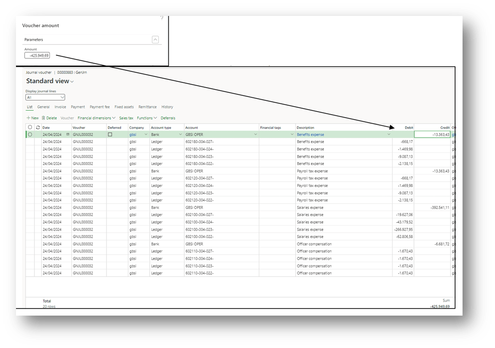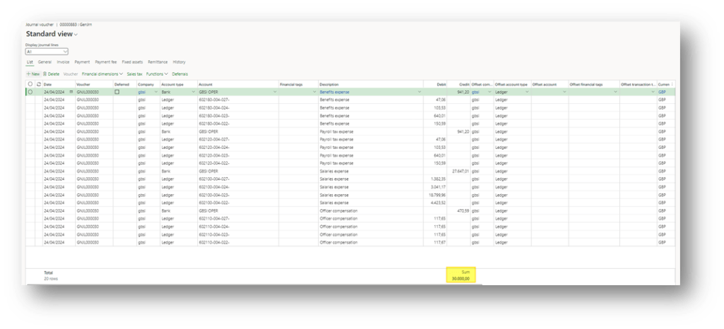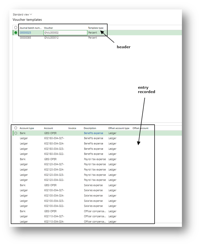 Choose the template. As we can see, there is a header with the generic information about the voucher saved, and below the lines details: