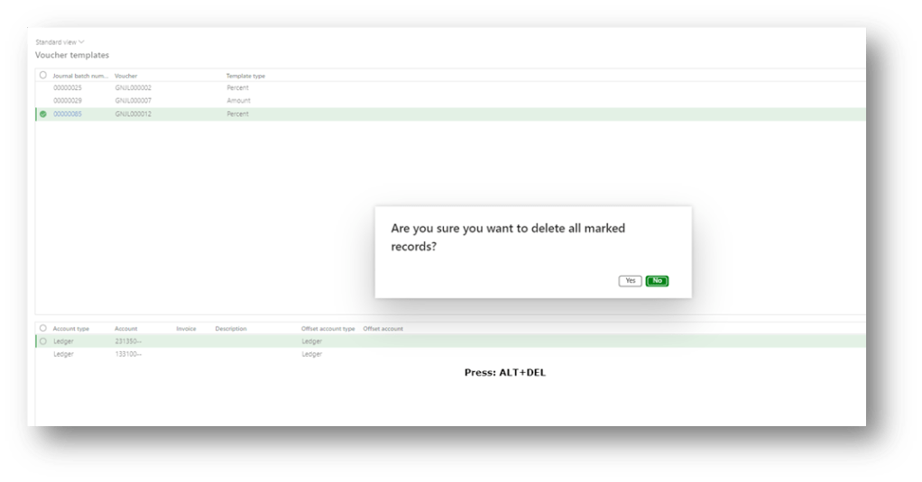 - If we want to delete a template, we can press ALT+DELT into the form “Select voucher”: