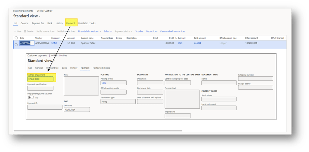 Customer payment