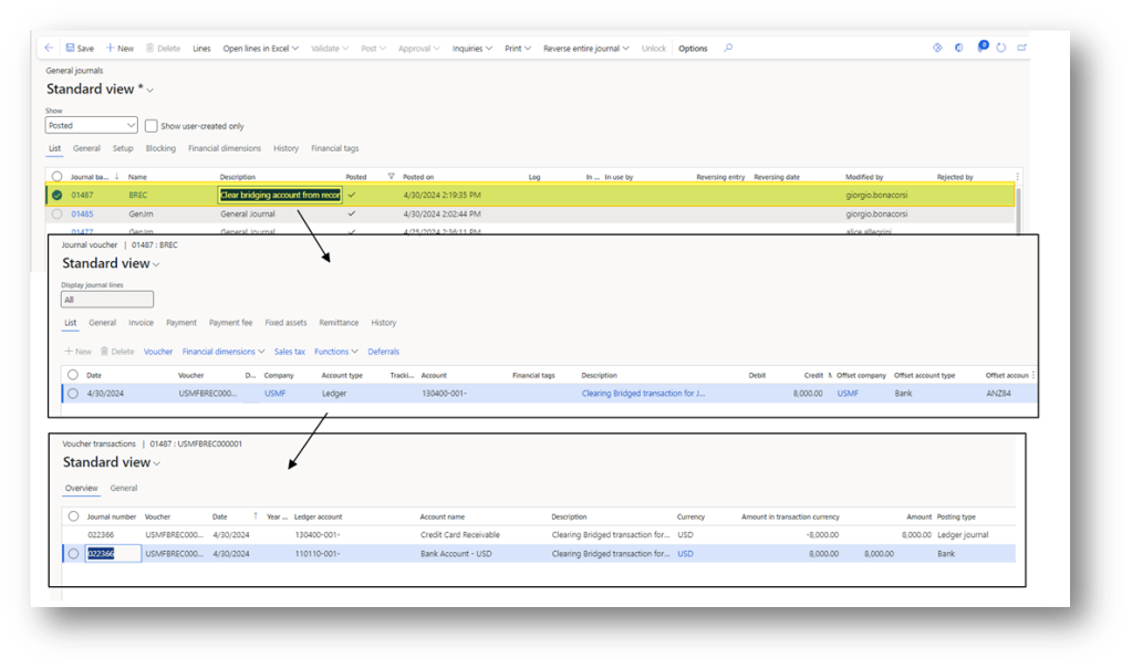 When it’s finished, we can see that the system was automatically posted the clearing of the bridging account: