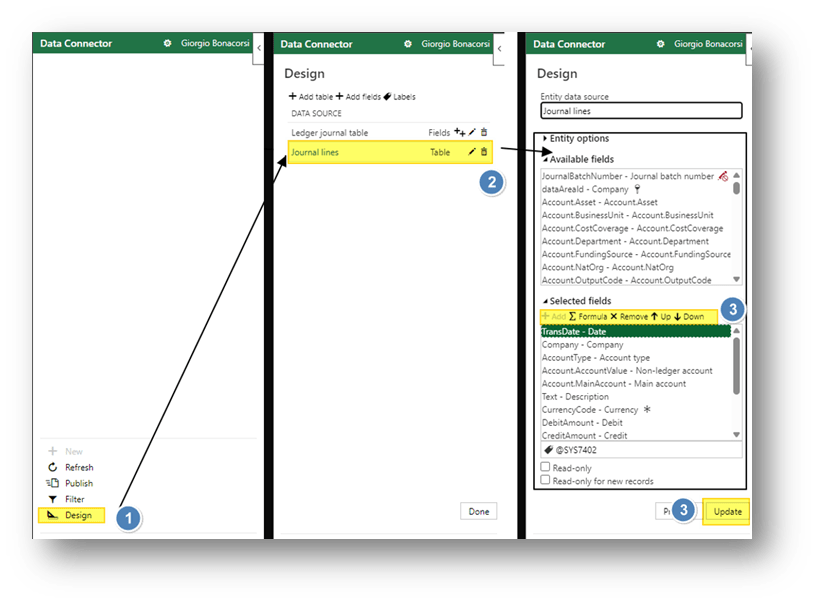 Select “Design” and add/remove the field that we want to see or modify into our structure: