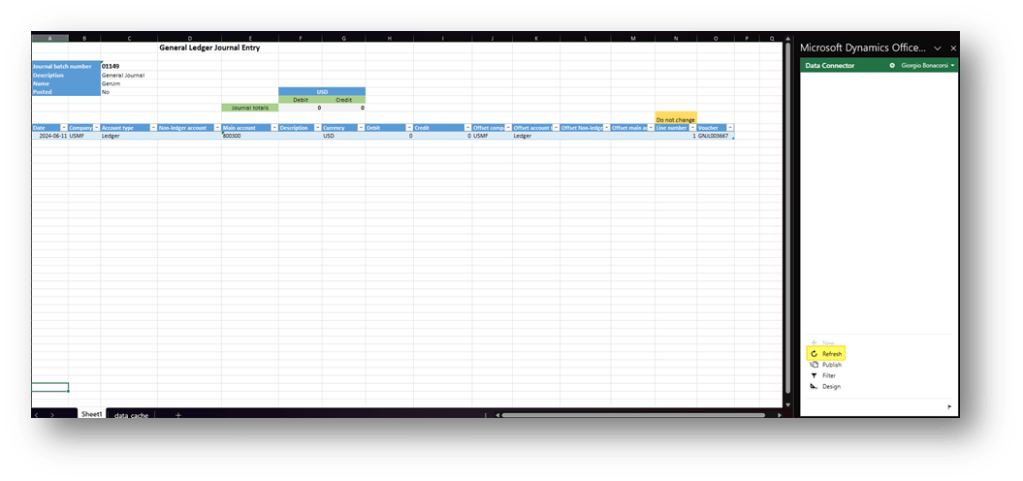 When we finish modifying the structure, we can press “refresh” to import the data already present in the journal: