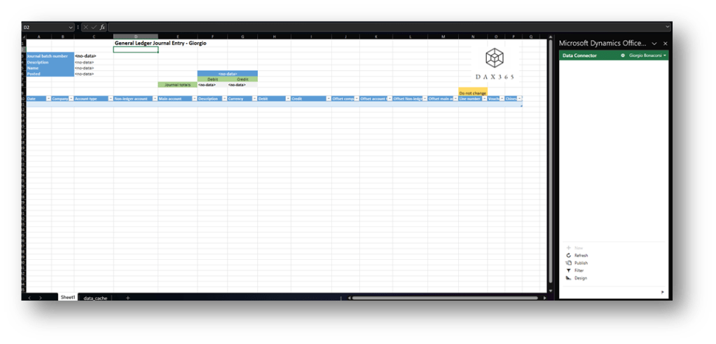 Now, we can see our Excel is already integrated with D365FO. Insert our credential to complete the integration access, and following these step: