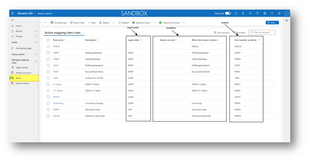 - Item number would be: Items in D365FO