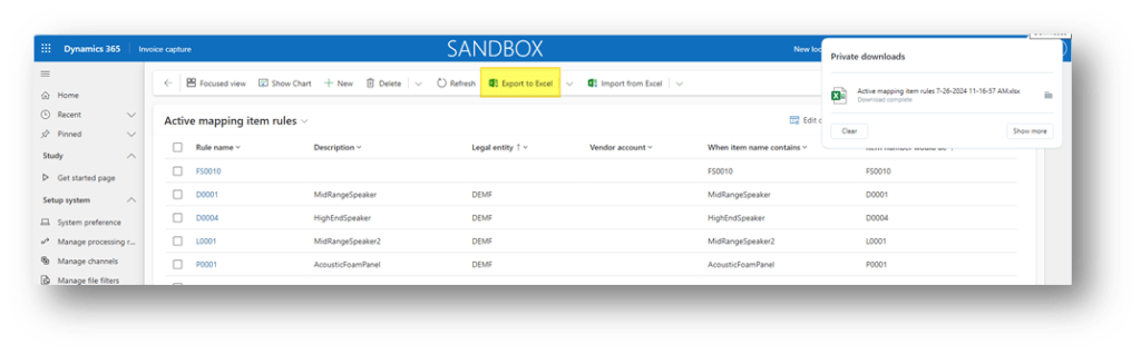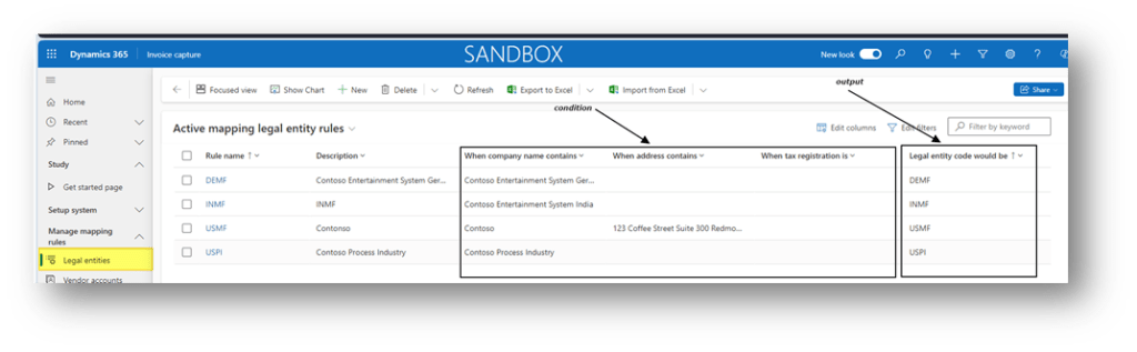 Go to: Setup system> Manage mapping rules> Legal entities.