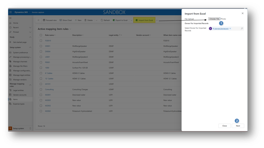 Some configurations, like the vendor or the items, are difficult to maintain manually. Therefore, it’s possible to import them massively throughout an Excel file. Here, we are going to make an example of the item’s configuration.