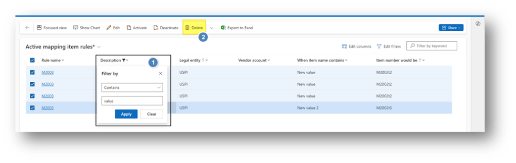 - When Item name contains: It’s a condition;