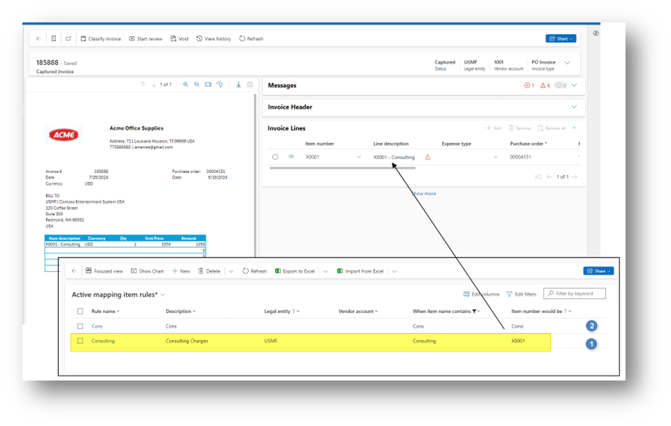 In this configuration we map the value between the Invoice captured and D365FO. The values that we can map are:
