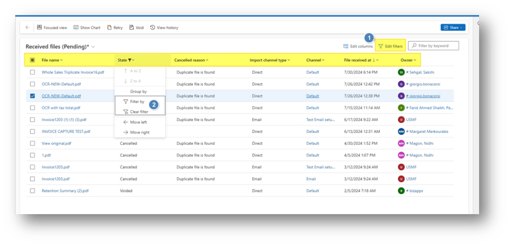 - Filter: filter the value. Notice that as default, the form is filtered to show only the invoice different from “Captured” and “Rejected”;
