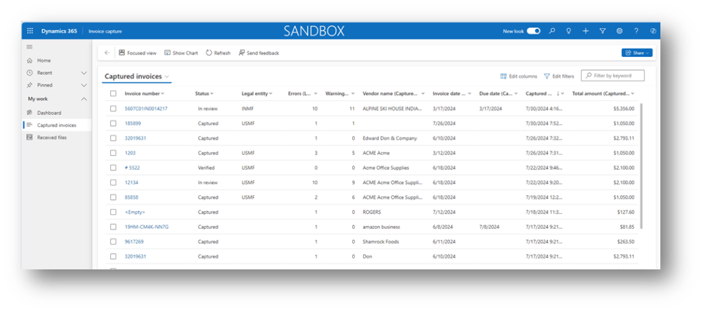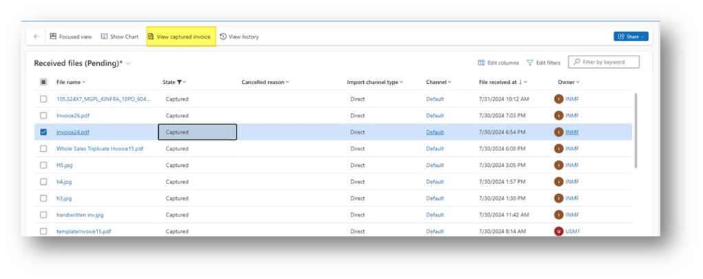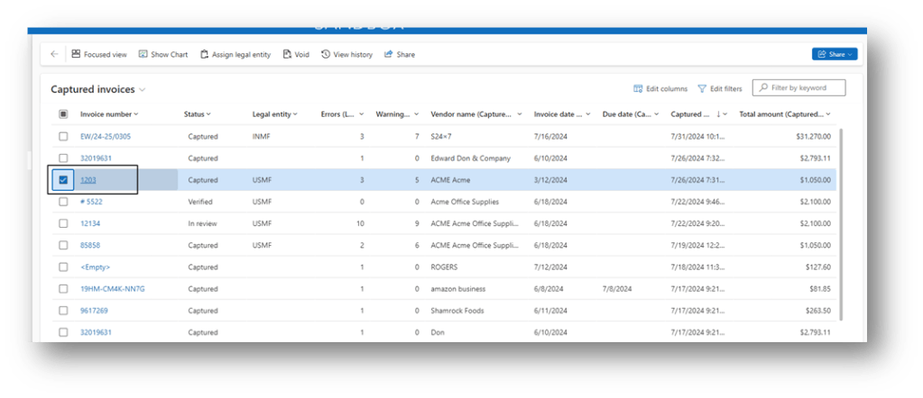 - View captured invoice: For the record with the status “Captured, we can see the result.