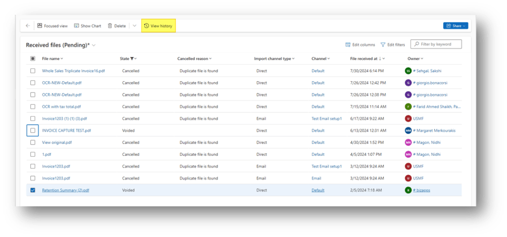We can see the list of documents received from the different channels in this dashboard. The invoice can assume these statuses: