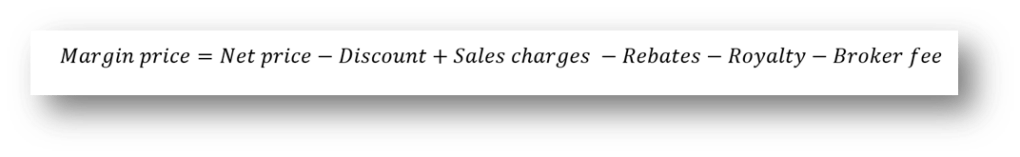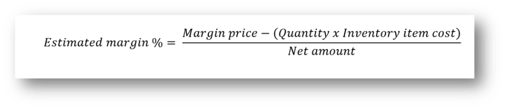 We can find here a resume of the calculation done by D365FO to calculate the margin percentage: