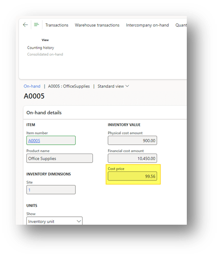 About the items cost, we have to check inventory cost from the items on-hand”: