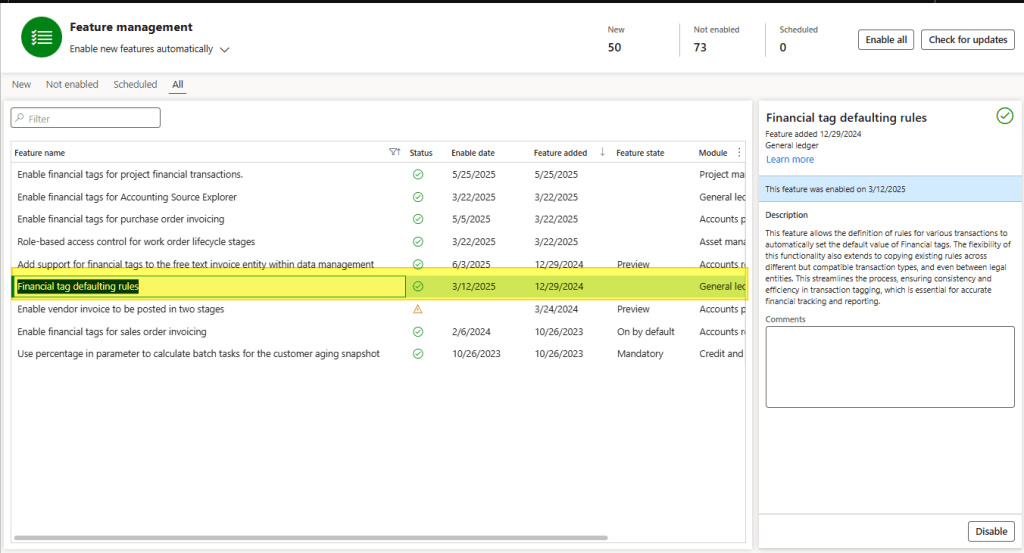 Financial tags are an alternative to financial dimensions for collecting information related to ledger transactions. While it’s not the focus of this article, it’s important to note that financial tags differ significantly from financial dimensions. Unlike dimensions, financial tags do not enforce validation rules during data entry, and they cannot be used for trial balance inquiries. These inquiries out of the box are performed at the transaction level.