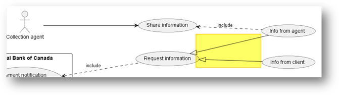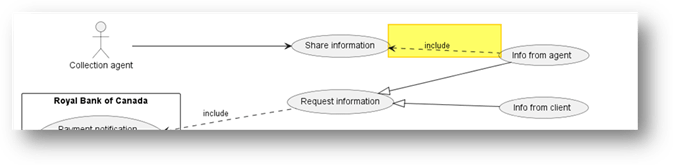 The system boundary defines the system in which the user will carry out the case. In this example, the user completes the payment notification check within the Royal Bank of Canada portal, while each request for information is considered outside the system. Payment cases are handled in D365FO within the Accounts Receivable module.