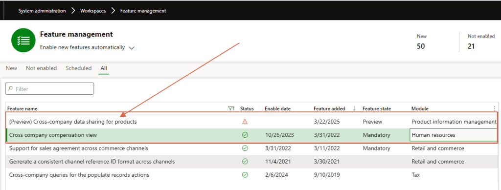 - Some tables are not yet on the permitter of this cross-sharing functionality. Give a look at the new Microsoft release because some new features extend the tables touched by cross sharing. Currently on version 10.0.44 we have 2 features: one for the product master data, and the other one concerning the compensation.