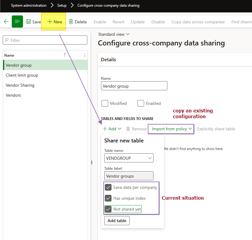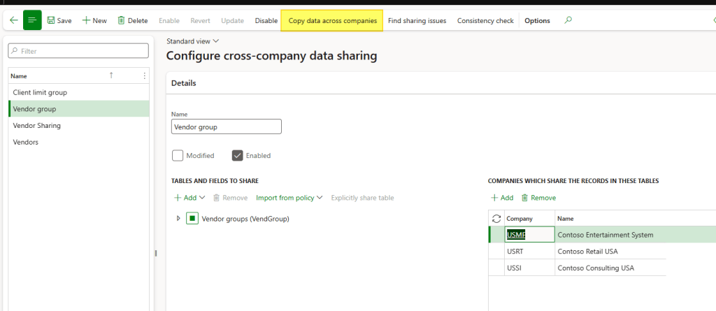 During the exploration we will see an example case of cross-company sharing applying to the vendor groups.