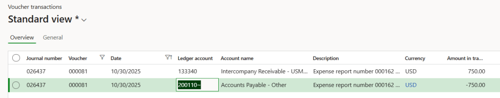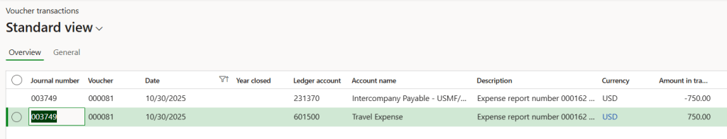 Proceed as usual with workflow submission and expense report posting. Upon completing the regular process, we will have these vouchers: