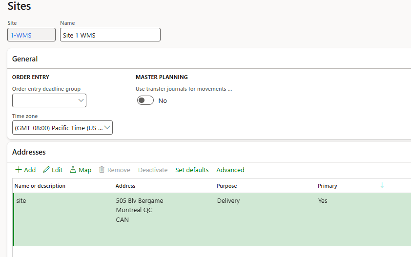 The minimum configurations to insert are inserting the ID and Name. It is even good practice (no mandatory) to add even the site address (we can reuse in further documents or tax calculation):