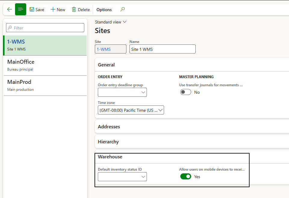 - Allow user on mobile devices to receive at another device: Enable the user to receive load from another warehouse related to this site. Otherwise we have to receive the load precisely on the warehouse specified;