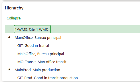 The hierarchy is not a setup, but a display value. It display the hierarchy tree configurated between the site and the warehouse: